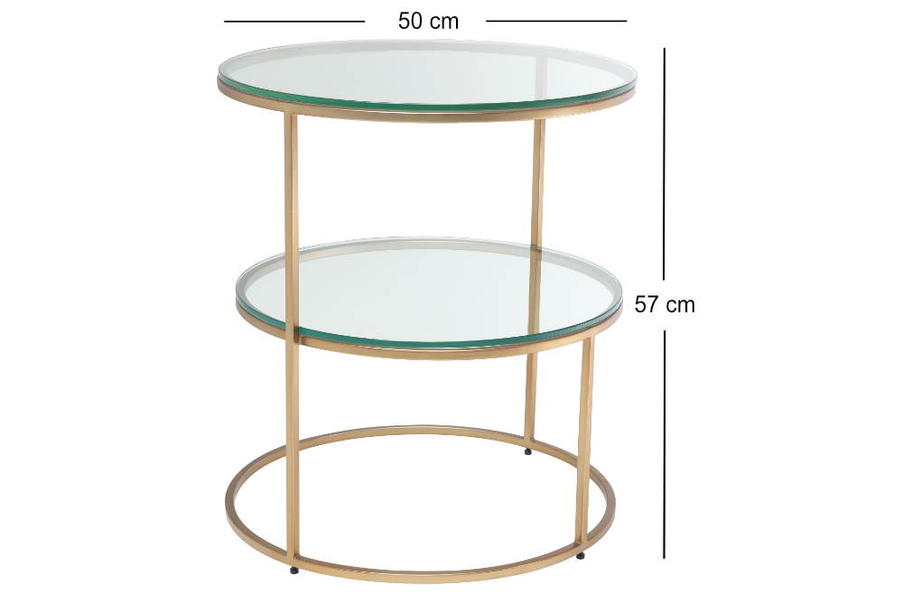 Der Tisch von Eichholtz Circles (114228) hat den Durchmesser 50 cm und die Höhe 57 cm. Durch ihren besonderen Bau ist der Tisch leicht im Zimmer platzierbar, ist platzsparend und wirkt zudem sehr edel.