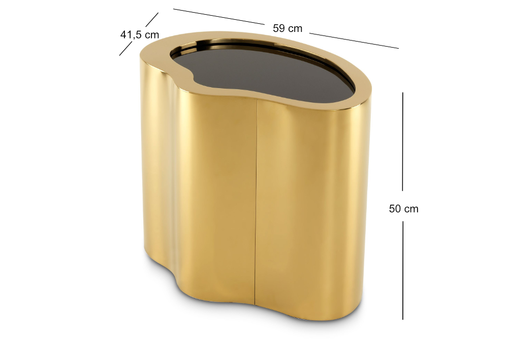 Alle Informationen auf einen BlickDer Beistelltisch Gibbons von Eichholtz ist mit seinem besonderen Design ein echter Hingucker. Der Beistelltisch besteht als poliertem Edelstahl im Gold-Finish und einer schwarzen Glasplatte.