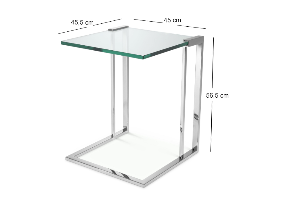 Das Gestell besteht aus Edelstahl und die Tischplatte aus Glas.