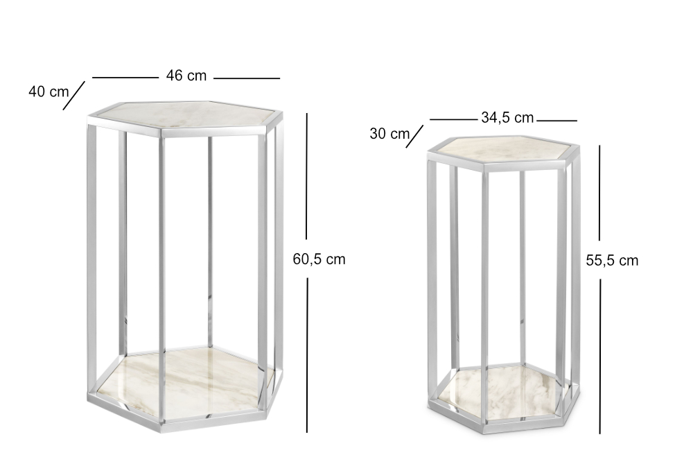 Beistelltische 2er Set aus Edelstahl & Marmor