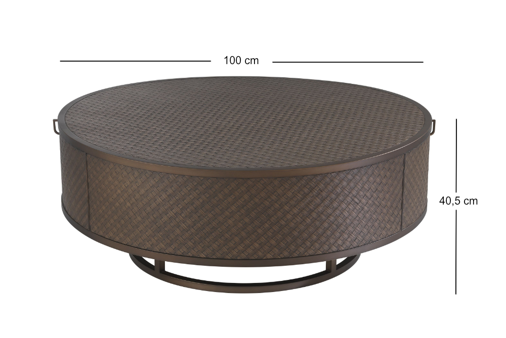 Der Couchtisch Eichholtz Napa Valley 113394 hat den Durchmesser 100 cm und die Höhe 40,5 cm.