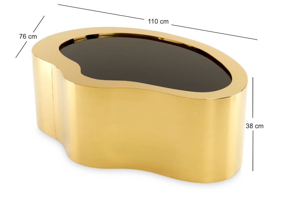 Alle Informationen auf einen BlickDer Couchtisch Eichholtz Gibbons ist mit seinem besonderen Design ein echter Hingucker. Der Beistelltisch wird als polierter Edelstahl in Gold-Finish angeboten. Durch seine ungewöhnliche Form ist dieser Tisch sehr individuell. Die Tischplatte hat eine glänzend schwarze Glasplatte, welches edel und luxuriös aussieht. Dieser Tisch ist hochwertig und verleiht dem Zimmer ein modernes Ambiente.