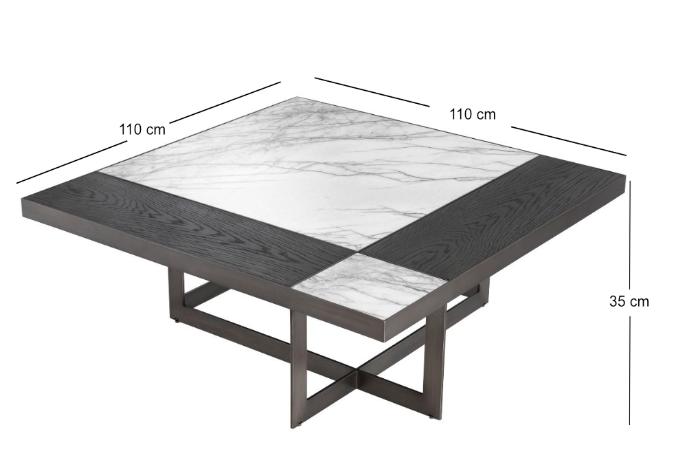 Der Couchtisch Eichholtz Hermoza hat die Maße: B 110 cm, T 110 cm, H 38 cm. Durch ihren besonderen Bau wirkt der Tisch edel und schlicht.