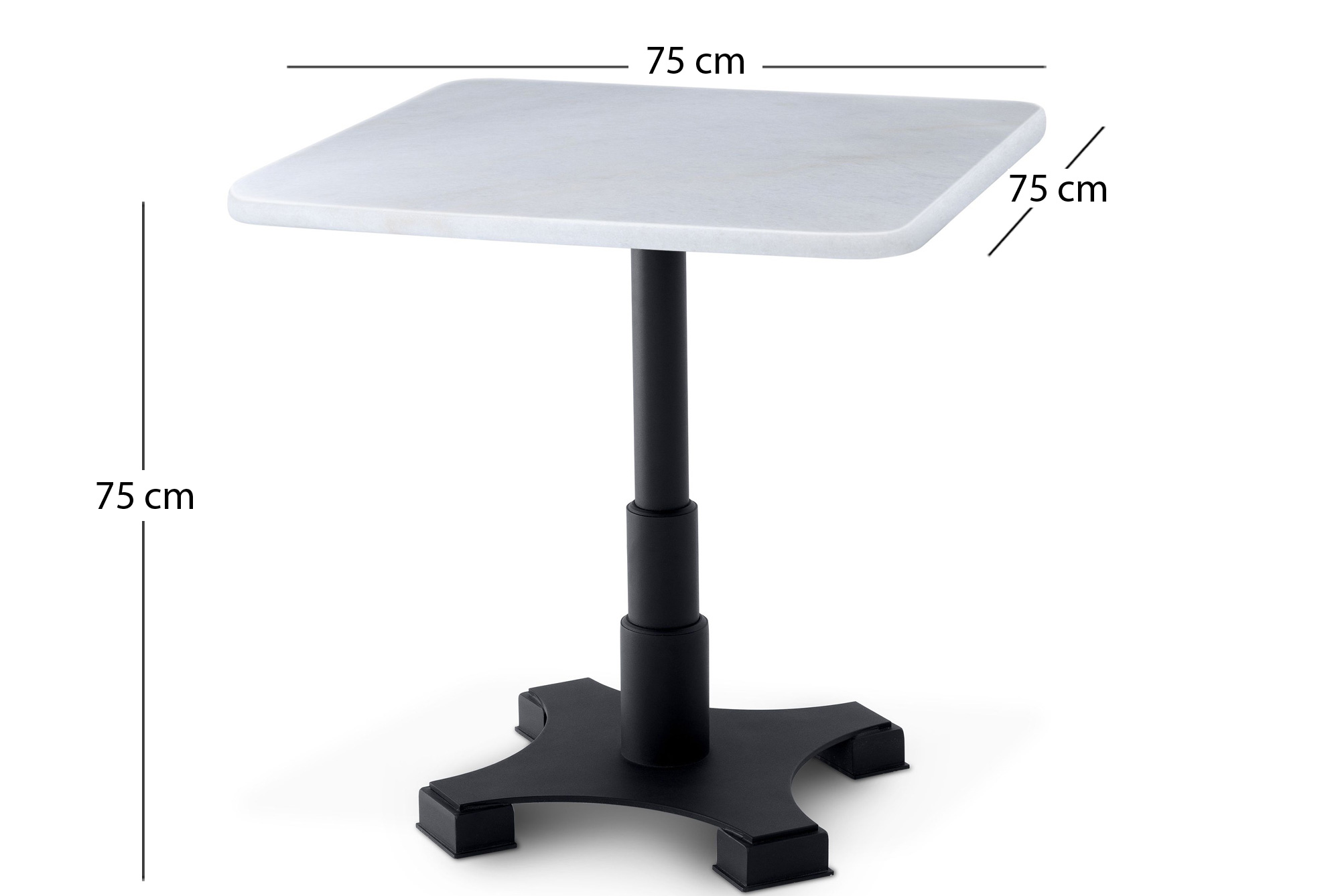 Alle Informationen auf einen BlickWählen Sie den Esstisch Mercier square in der für eine zeitgenössische Interpretation eines traditionellen Bistrotisches. Mit einem stabilen schwarzen Grundgestell und einer quadratischen Tischplatte aus weißem Marmor mit abgerundeten Ecken ist dieser stilvolle Esstisch eine wunderbare Ergänzung für Ihre Frühstücksecke, Ihre Wohnküche oder Ihr Esszimmer. Ideal für kleinere Räume mit begrenztem Platz, sowie für den Einsatz im Freien.
