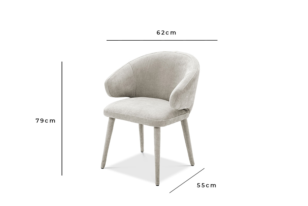 Empfangen Sie all Ihre Gäste stilvoll mit dem Cardinale Dining Chair. Die gebogene Rückenlehne und die spitz zulaufenden Beine sind mit einem Samtartigen Stoff gepolstert und verleihen diesem auffälligen Sessel einen Hauch von Mid-Century Modern.