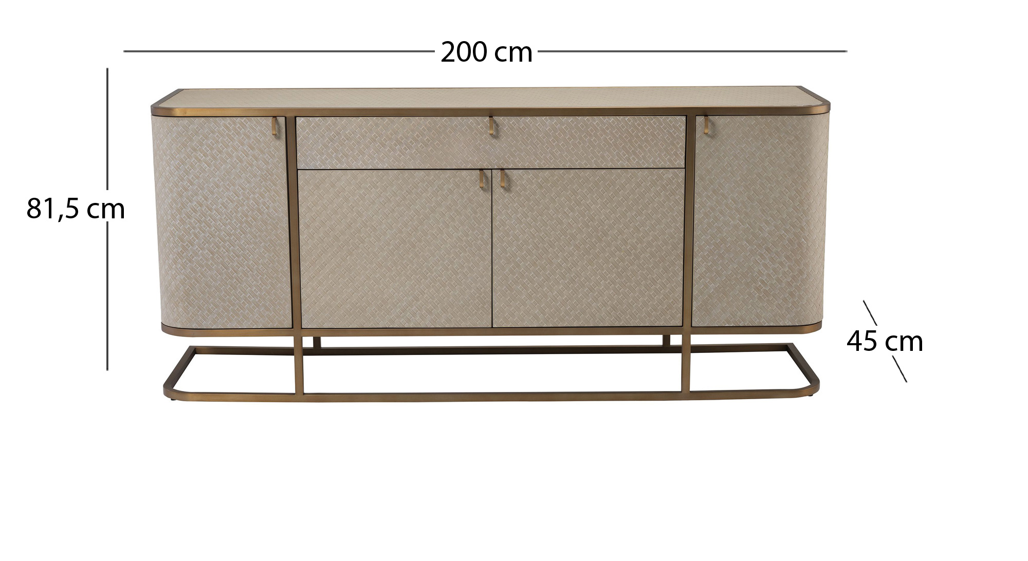 Alle Informationen auf einen BlickDie Napa Valley Messing Kommode kombiniert den Bauhaus-Stil mit einem Mid-Century Modern-Look und präsentiert einen eleganten Rahmen aus gebürstetem Messing. Es ist mit gewebtem, gewaschenem Eichenfurnier ausgekleidet und enthält 4 Türen und eine Schublade mit Edelstahlgriff..