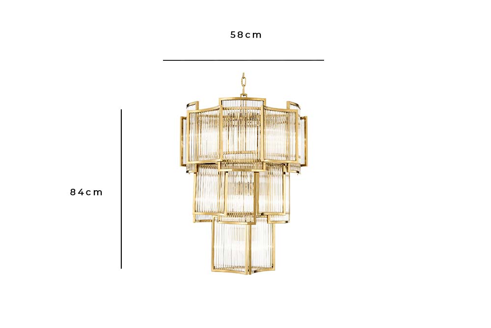 Alle Informationen auf einen BlickSchaffen Sie einen faszinierenden Blickpunkt in Ihrem Interieur mit dem funkelnden Jet Set Kronleuchter. Dieser bezaubernde Art-Déco-Kronenleuchter verfügt über geschwungene, goldfarbene Paneele mit dekorativen Stäben aus Klarglas.