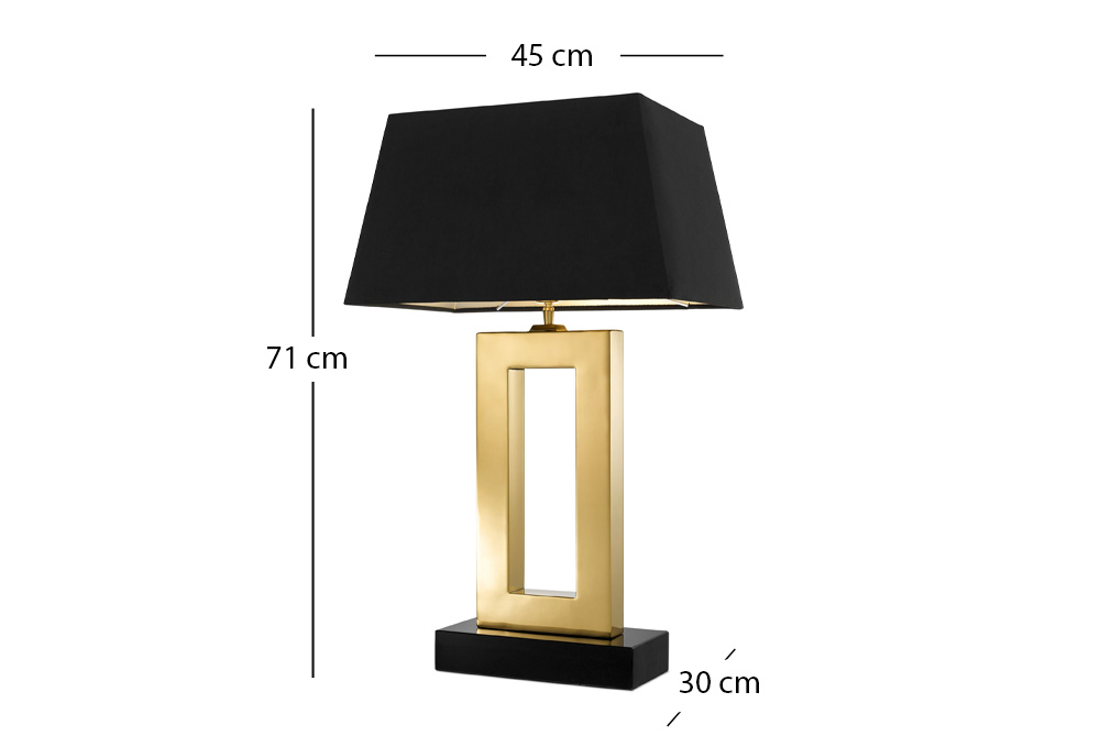 Alle Informationen auf einen BlickDie Tischleuchte Arlington weiß mit ihrem zurückhaltenden und doch edlen Design zu überzeugen. Der goldfarbene Metallrahmen ruht auf einem schwarzen Granitsockel und wird mit einem schwarzen trapezförmigen Lampenschirm geliefert.
