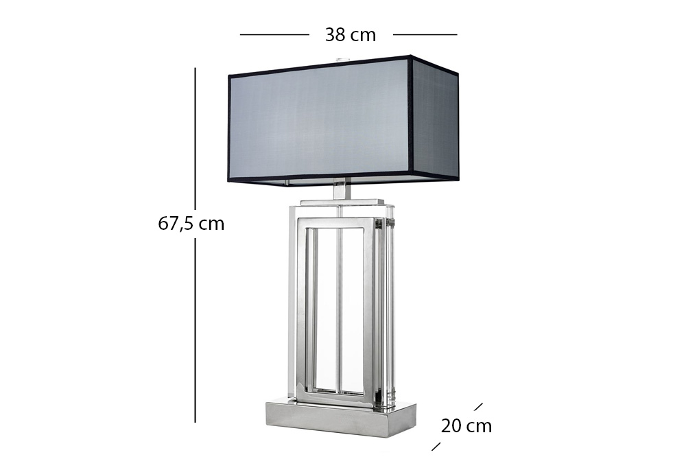 Die Tischlampe Arlington spiegelt die Schönheit Ihres Möbelarrangements wider und ruft ein bezauberndes Ambiente in Ihrem Haus hervor. Der moderne Lampensockel hat einen klaren Kristallglasrahmen mit Nickel-Finish und wird mit einem grauen, rechtwinkligen Lampenschirm geliefert.
