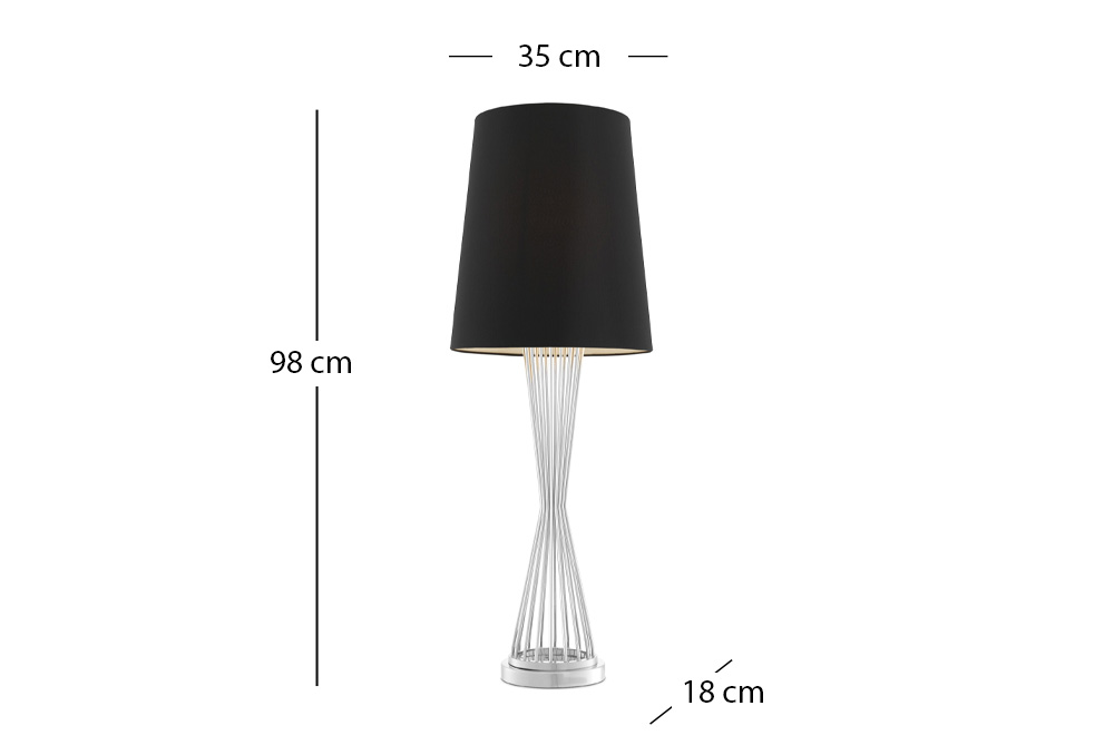 Alle Informationen auf einen BlickMit ihrem schlanken sanduhrförmigen Lampensockel und den filigranen Linien ist die Tischlampe Holmes so gestaltet, dass sie stilvoll hervorsticht. Die durchbrochene Leuchte aus Edelstahl ist mit einem Nickel-Finish versehen und hat einen schwarzen Lampenschirm.