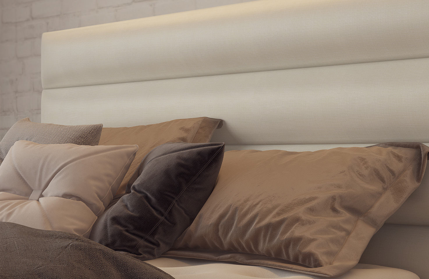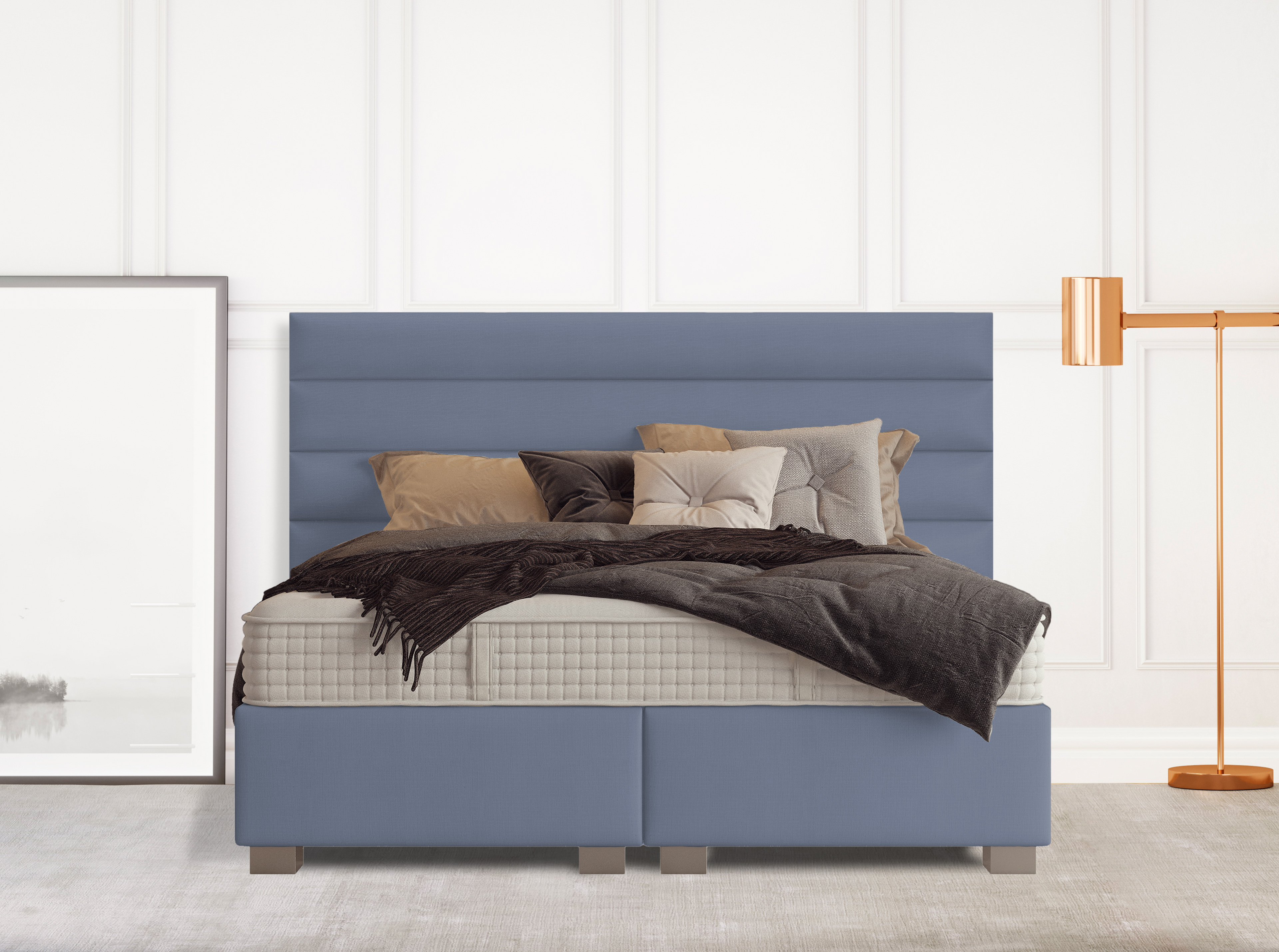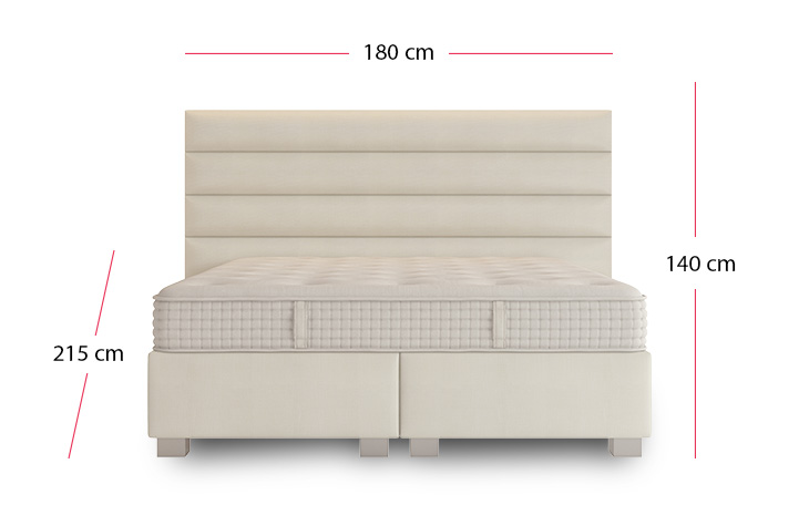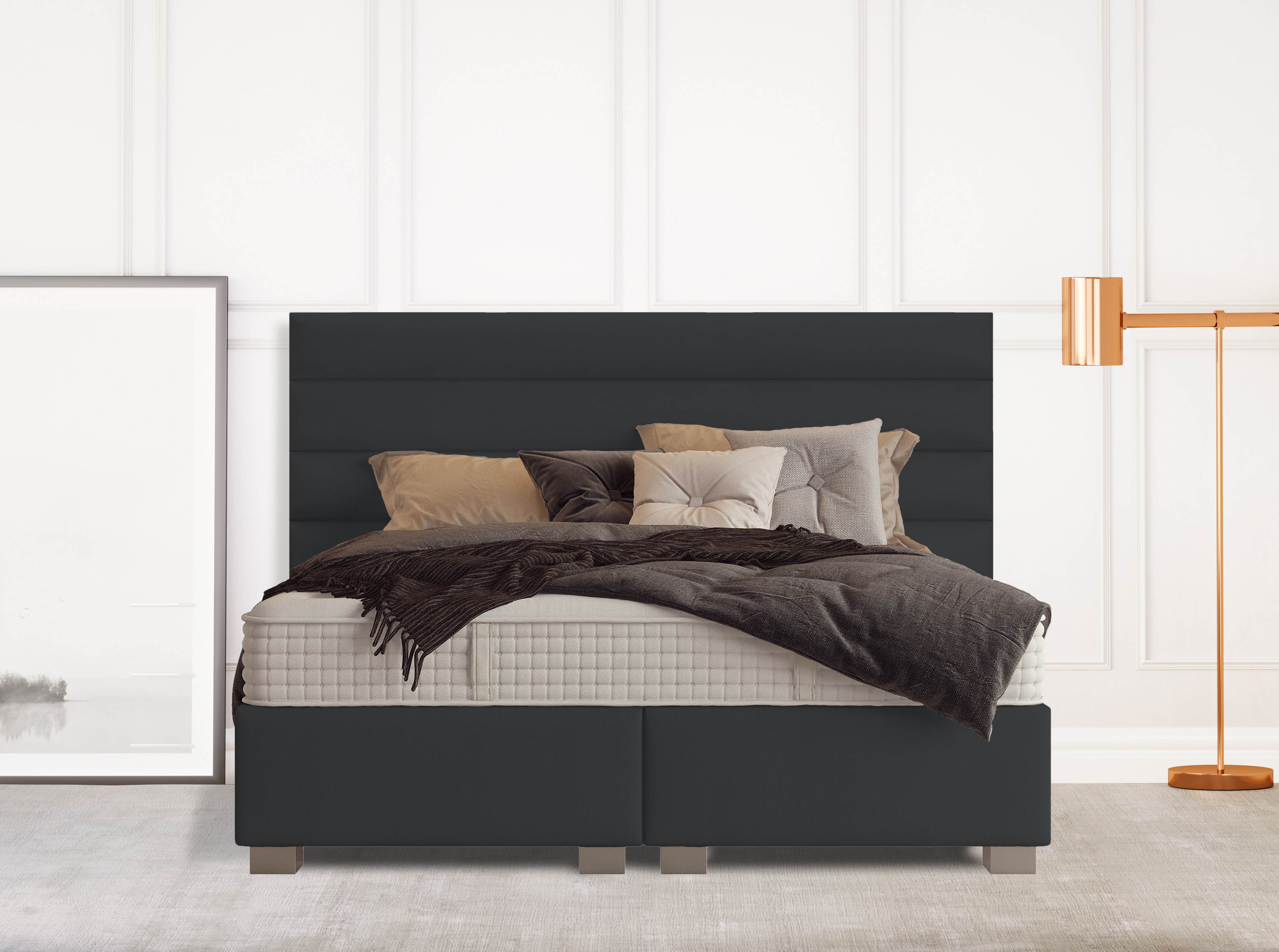 Das Kopfteil des Boxspringbetts Stripe besitzt 4 elegante Querstreifen. Das Kopfteil ist 140 cm hoch und schließt bündig mit den Boxen ab.