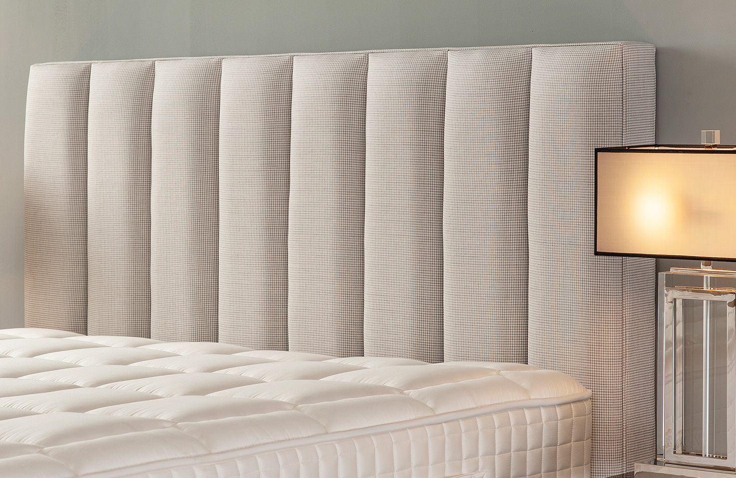 Das Kopfteil des Boxspringbetts Stripe Vertical besitzt 8 Längsstreifen. Das Kopfteil ist 140 cm hoch und schließt bündig mit den Boxen ab.